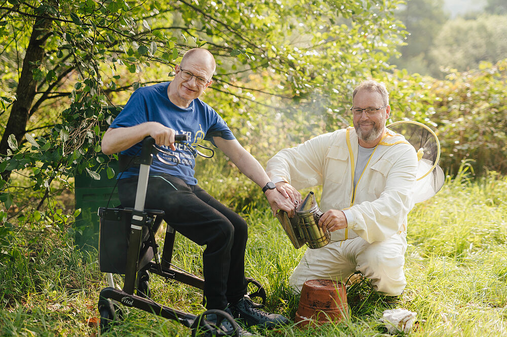 “Es ist schön zu sehen, wie viel Interesse, Freude und auch Ruhe die Arbeit mit Bienen vermitteln kann. Ein wunderbares Beispiel dafür, wie sinnvolle Beschäftigung und Naturerleben zusammenwirken können.” (Markus)
