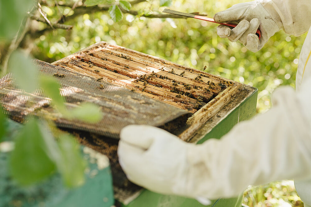 • Bienenstöcke den jeweiligen Anforderungen der Völker baulich anpassen z. B. nach dem Winter Mäusegitter entfernen, Brutmöglichkeiten erweitern