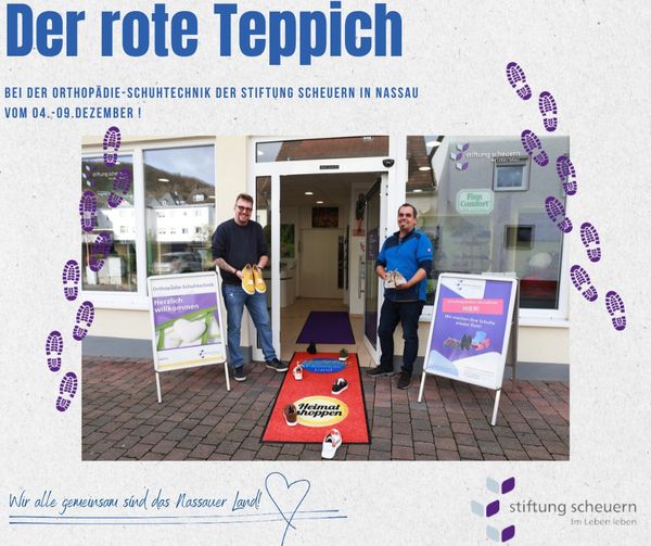 Kommen Sie herein und schauen Sie, wie sich 13 Menschen mit Behinderung unter Anleitung von sieben Mitarbeitenden der Stiftung Scheuern fachlich versiert und fürsorglich um Ihre Schuhe kümmern. In unserer Werkstatt bieten wir individuelles Handwerk für orthopädische Schuhe und Einlagen aller Art. Bei uns bekommen Sie auch einen Rund-um-Service für Ihre Schuhe. Dazu gehören neue Absätze oder Sohlen, Lederpflege, Aufhübschen Ihrer Lieblingsschuhe, Einlagen für jeden Tag oder für spezielle Sportarten, Laufbandanalyse mit Druckmessung, Sicherheitsschuhe, Post-OP-Schuhe und Maßanfertigungen. Ganz neu bieten wir auch Kompressionsstrümpfe an. Wir sind für Sie da!
