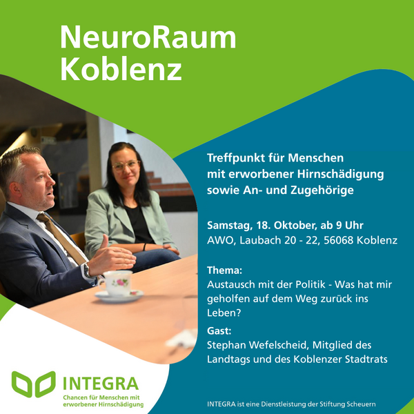 Dieses Mal ist Gelegenheit für einen Austausch mit der Politik. Es geht um die Frage: „Was hat mir geholfen auf dem Weg zurück ins Leben?“ Zu Gast ist Stephan Wefelscheid, Abgeordneter im rheinland-pfälzischen Landtag und Mitglied des Koblenzer Stadtrats.
