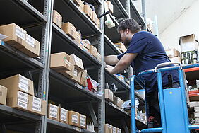 Als Lagerist hat Nico Kolbe nun genau die „Traumarbeit“, die er sich immer gewünscht hat. Er nimmt den Wareneingang entgegen, bucht ihn und ordnet die Ersatzteile, häufig mithilfe eines Hubmaststaplers, an der richtigen Stelle ins Regalsystem ein. Zu seinem Job gehört es natürlich auch, den Warenausgang zu managen, die Bestände zu überprüfen und bei Bedarf Ersatzteile nachzubestellen. „Da wir viele verschiedene Lieferanten haben, ist das eine ziemlich komplexe Aufgabe“, sagt Prokuristin Theresa Dupp, die Nico Kolbe sehr lobt: „Er ist zuverlässig, engagiert und hat sich sehr schnell integriert.“