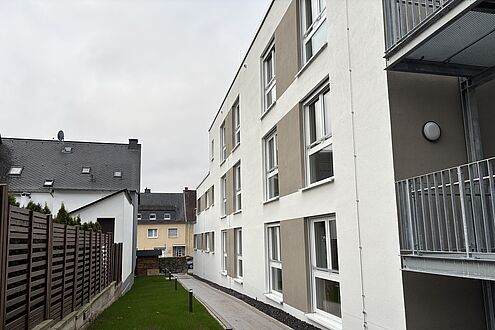 In der Sebastianusstraße 1a in Lahnstein können 24 Menschen mit Handicap leben. Das ist familien- und stadtnahes Wohnen für Menschen mit vorwiegend geistiger Beeinträchtigung, die aus Lahnstein und näherer Umgebung kommen bzw. dort in der Nähe ihrer Angehörigen leben möchten. Gewohnt wird in Zweizimmerapartments mit zugeordnetem Bad und gemeinsamem, nach Absprache gestaltbarem Vorraum. Das Haus ist barrierefrei und alle Wohnebenen und gemeinschaftlich nutzbare Räume sind über einen Personenaufzug erreichbar.