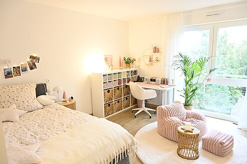 Zusätzlich erforderliche bedürfnisspezifische Ausstattungsmerkmale orientieren sich am individuellen Bedarf der Bewohner. So wird auch im Raumkonzept berücksichtigt, dass beispielsweise durch das Älterwerden der Bewohnerinnen und Bewohner, eine Veränderung der notwendigen Hilfemaßnahmen eintreten kann und hierdurch kein Umzug notwendig wird.